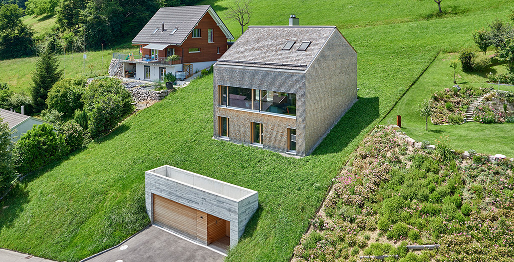 Wie sieht ein Holzhaus aus, das in einem Bergdorf komplett neu gebaut wird und zu denkmalgeschützten Höfen gleich nebenan passen soll?
