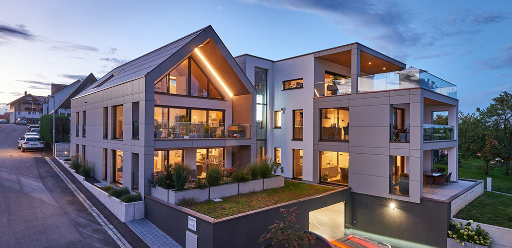 Auch mehrgeschossige Häuser lassen sich heute mit dem nachwachsenden Baustoff verwirklichen – inklusive aller Vorteile, die ein Holzgebäude seinen Bauherren und den Bewohnern bietet: Gutes Raumklima, ökologische Wohnqualität, angenehme Akustik mit wirksamem Trittschallschutz und beste Brandschutzeigenschaften.