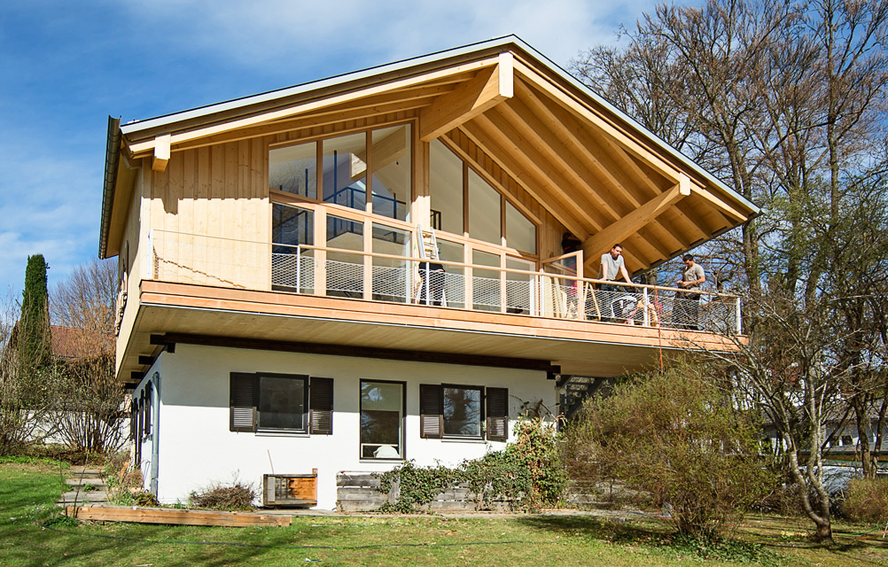 So lässt es sich wunderbar arbeiten: Das Architekturbüro vonMeierMohr in Schondorf liegt nur wenige Meter vom idyllischen Ufer des Ammersees entfernt. Allerdings erwies sich das Gebäude im Lauf der Jahre zunehmend als zu klein für das kontinuierlich wachsende Team. Mehr Quadratmeter mussten also her, um Freiraum für die künftige gute Entwicklung des Betriebs zu gewinnen. Die Lösung: Eine Aufstockung des Hauses konnte eine zusätzliche Ebene für kreatives Arbeiten bereitstellen – und auch eine Optik schaffen, die die regionale Verwurzelung des Architekturbüros deutlich erkennbar macht. Denn das Bauen mit Holz hat im bayerischen Fünfseenland eine lange und äußerst lebendige Tradition, ganz gleich, ob Gebäude komplett aus Holz bestehen oder in Teilen aus dem Naturmaterial gestaltet werden.