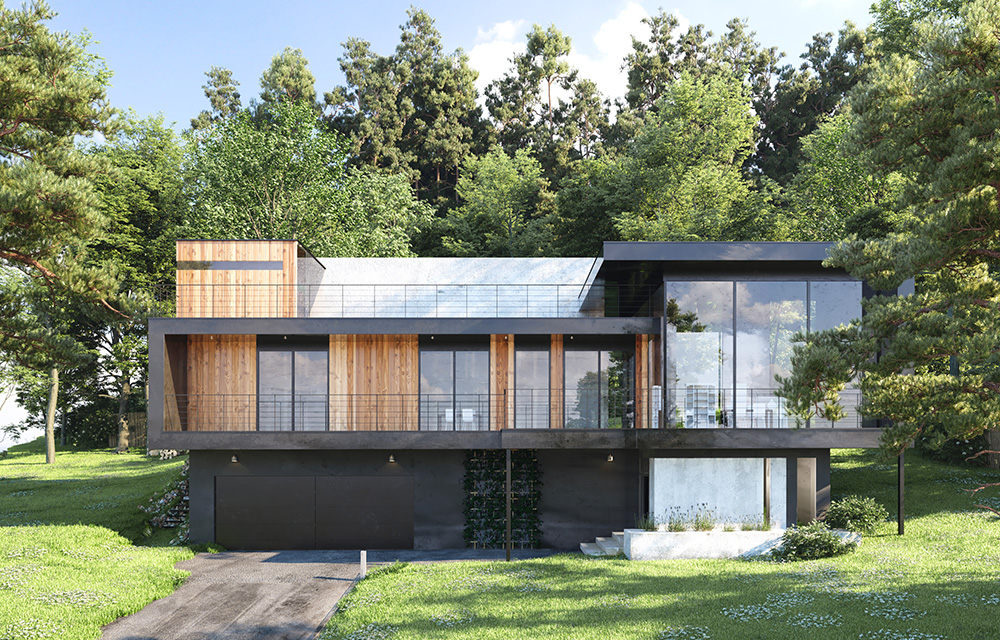Viele Menschen assoziieren mit dem Begriff Holzhaus immer noch den bilderbuchhaften „Blockhütten-Look“. Dabei sind Holzhäuser in Design und Architektur topmodern und bieten nahezu unendliche Gestaltungsmöglichkeiten. Kurz: Ein Holzhaus kann wie eines aussehen, muss aber nicht. Zeitgemäß große Fensterfronten lassen sich ebenso realisieren wie elegante Fassadentypen und unterschiedliche Bedachungslösungen. Natürlich ist das Holz selbst nach wie vor ein prägnantes Gestaltungselement für den Baukörper, auf das viele Bauherren und Architekten nicht verzichten wollen. Besonders effektvoll sind beispielsweise sichtbare Holzelemente, die zur optischen Gliederung der Außenwände eingesetzt werden.
