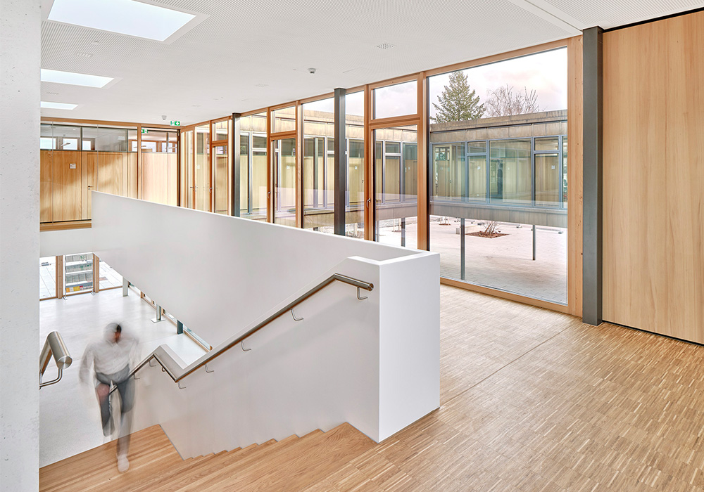 Das Überraschende an diesem preisgekrönten Objekt: Es ist kein Neubau. Der Kern der Bundesgeschäftsstelle des Deutschen Alpenvereins stammt aus den 1970er Jahren. Statt Abriss entschied man sich für ein Upgrade mit Holz – eine Aufstockung um zwei Geschosse und eine innovative Fassadengestaltung, die auch die Lüftung übernimmt, und das rein durchs Design ohne zusätzliche mechanische Elemente. Die Aufstockung selbst war nur mit Holz möglich, da sein geringes Eigengewicht der vorhandenen Gebäudestatik gerecht wird.