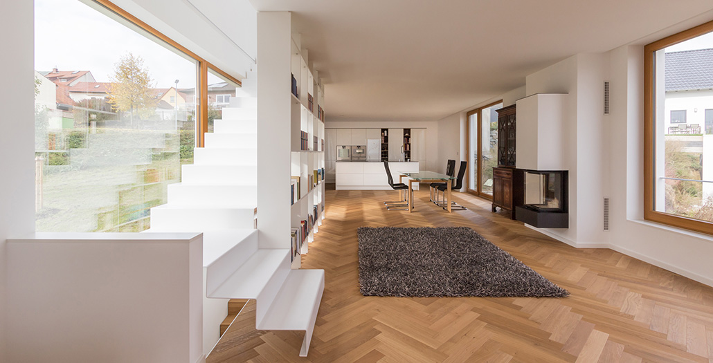 Auch mehrgeschossige Häuser lassen sich heute mit dem nachwachsenden Baustoff verwirklichen – inklusive aller Vorteile, die ein Holzgebäude seinen Bauherren und den Bewohnern bietet: Gutes Raumklima, ökologische Wohnqualität, angenehme Akustik mit wirksamem Trittschallschutz und beste Brandschutzeigenschaften.