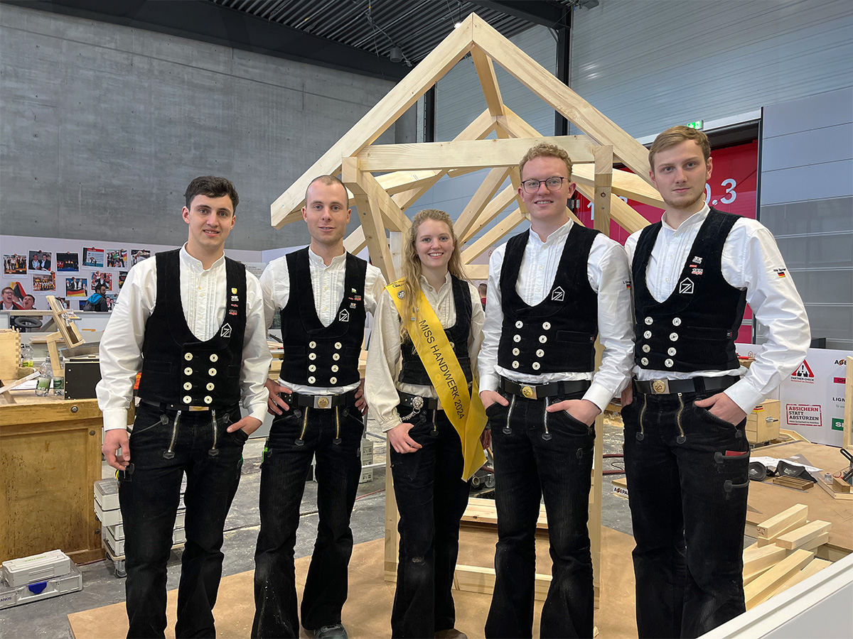 Dass die Zimmerer-Nationalmannschaft , bestehend aus den besten Gesellinnen und Gesellen, die Messe für Live-Trainings zur bevorstehenden World Skills International nutzte, brachte Stimmung in die Messehallen – und eine gehörige Portion Staunen ebenfalls.
