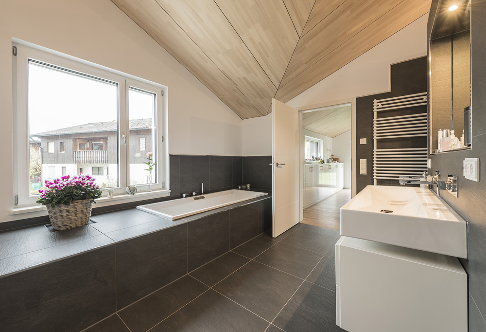In einem Kubikmeter Holz stehen dafür immerhin bis zu 200.000 Quadratmeter Zellwandfläche und eine Speicherkapazität bis zu 30 Litern zur Verfügung. Diese regulierende Eigenschaft hält die Luftfeuchtigkeit in den Räumen stabil, sowohl im trockenen August als auch im nasskalten November. Auch auf die Innentemperatur hat Holz einen ausgleichenden Einfluss, was die Energieeffizienz des Hauses deutlich steigert. Das Ergebnis ist eine Wohnumgebung, die sich Tag für Tag positiv aufs Wohlbefinden auswirkt.