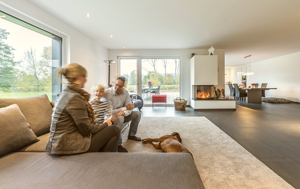 Ob Sommer oder Winter – im Haus herrscht übers ganze Jahr ein angenehmes, behagliches Raumklima. Dazu leistet der Baustoff Holz auf ganz natürliche Weise einen wertvollen Beitrag: Die massiven Holzwände wirken als sanfte, biologische „Klimaanlage“. Durch seine diffusionsoffene Zellstruktur ist Holz in der Lage, Feuchtigkeit schnell zu speichern und sie bei zu trockener Raumluft ebenso rasch wieder abzugeben.