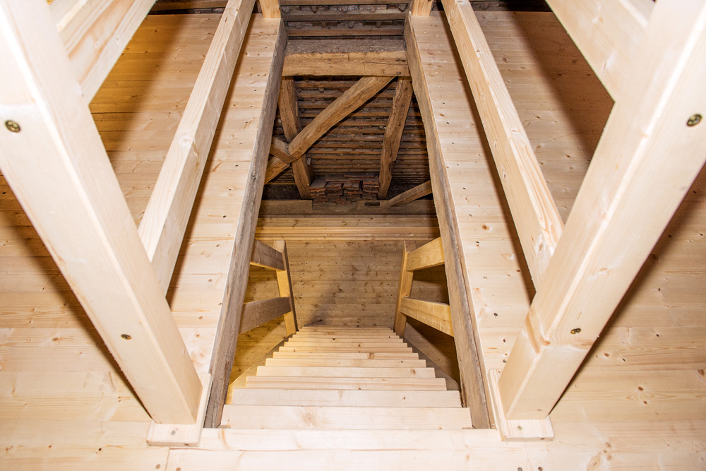 Nach Monaten intensiver Arbeit, die den beteiligten Zimmerern alles fachliche Können abverlangten, aber auch viel Freude bereiteten, konnte das Projekt erfolgreich abgeschlossen werden. Der „Alte Hotz“ übrigens klingt jetzt noch besser als je zuvor: In einer seiner Turmkammern werden künftig zwei statt nur einer Glocke läuten. „Als ich den Glockenstuhl das erste Mal in fertigem Zustand und mit den hängenden Glocken sah, ging mir das Herz auf, meine Augen leuchteten und ich war stolz, ein Zimmerer zu sein.“ freut sich Zimmermeister Christian Denz über das Happy End mit Holz.